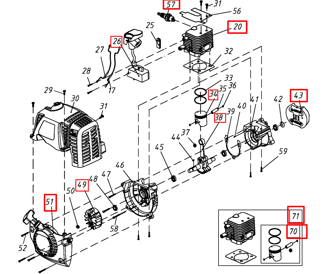 4 | СТАРТЕР - ПОРШЕНЬ - КОЛЕНВАЛ- КОЛЬЦА | Запчасти для мотодрели чемпион | DR230 | Поставка по России | Магазин-Сервис в СПБ |