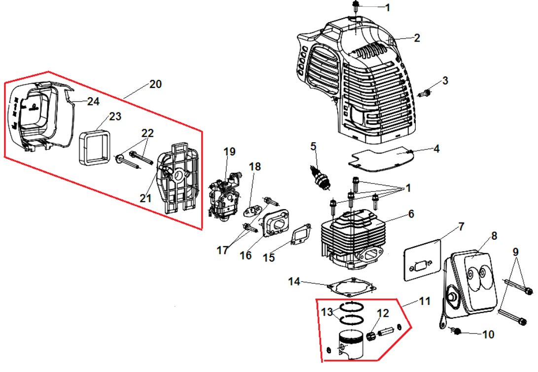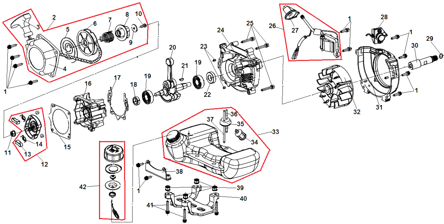 1 КАРБЮРАТОР - ПОРШЕНЬ - КОЛЬЦА - ЦИЛИНДР - ФИЛЬТР ВОЗДУШНЫЙ | Запчасти для мотопомпы чемпион GP27-II | Поставка по России | Магазин-Сервис в СПБ |