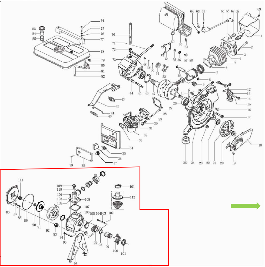 1 КАРБЮРАТОР - ПОРШЕНЬ - КОЛЬЦА - КОРПУС ПОМПЫ - САЛЬНИК - КРЫЛЬЧАТКА - УЛИТКА | Запчасти для мотопомпы чемпион GP40-II | Поставка по России | Магазин-Сервис в СПБ |