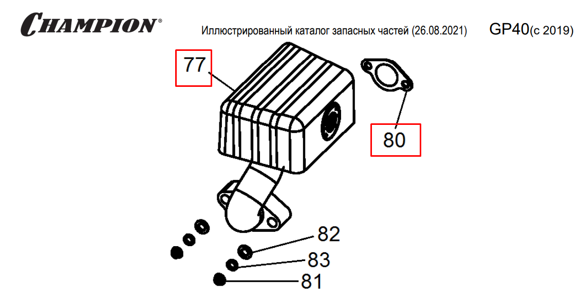 8 | ГЛУШИТЕЛЬ | Запчасти для мотопомпы чемпион | GP40 после 2019 года после s/n 23091900001 | Поставка по России | Магазин-Сервис в СПБ |