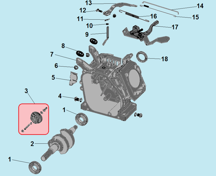 1 КОРПУС - ДВИГАТЕЛЬ | Запчасти для мотопомпы чемпион GP55 | Поставка по России | Магазин-Сервис в СПБ |