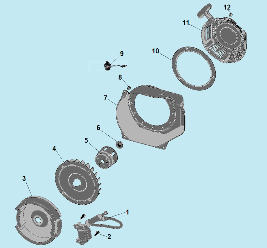 8 СТАРТЕР - МАГНЕТО - МАХОВИК | Запчасти для мотопомпы чемпион GP55 | Поставка по России | Магазин-Сервис в СПБ |