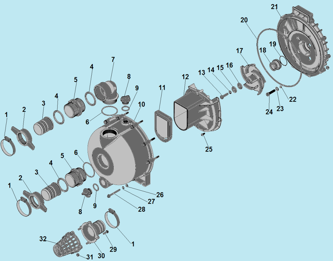 2 КОРПУС - УЛИТКА -САЛЬНИК - КРЫЛЬЧАТКА | Запчасти для мотопомпы чемпион GP55 | Поставка по России | Магазин-Сервис в СПБ |