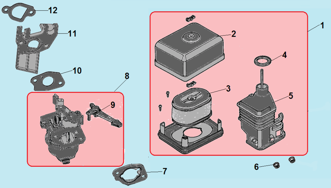9 КАРБЮРАТОР - ВОЗДУШНЫЙ ФИЛЬТР | Запчасти для мотопомпы чемпион GP55 | Поставка по России | Магазин-Сервис в СПБ |