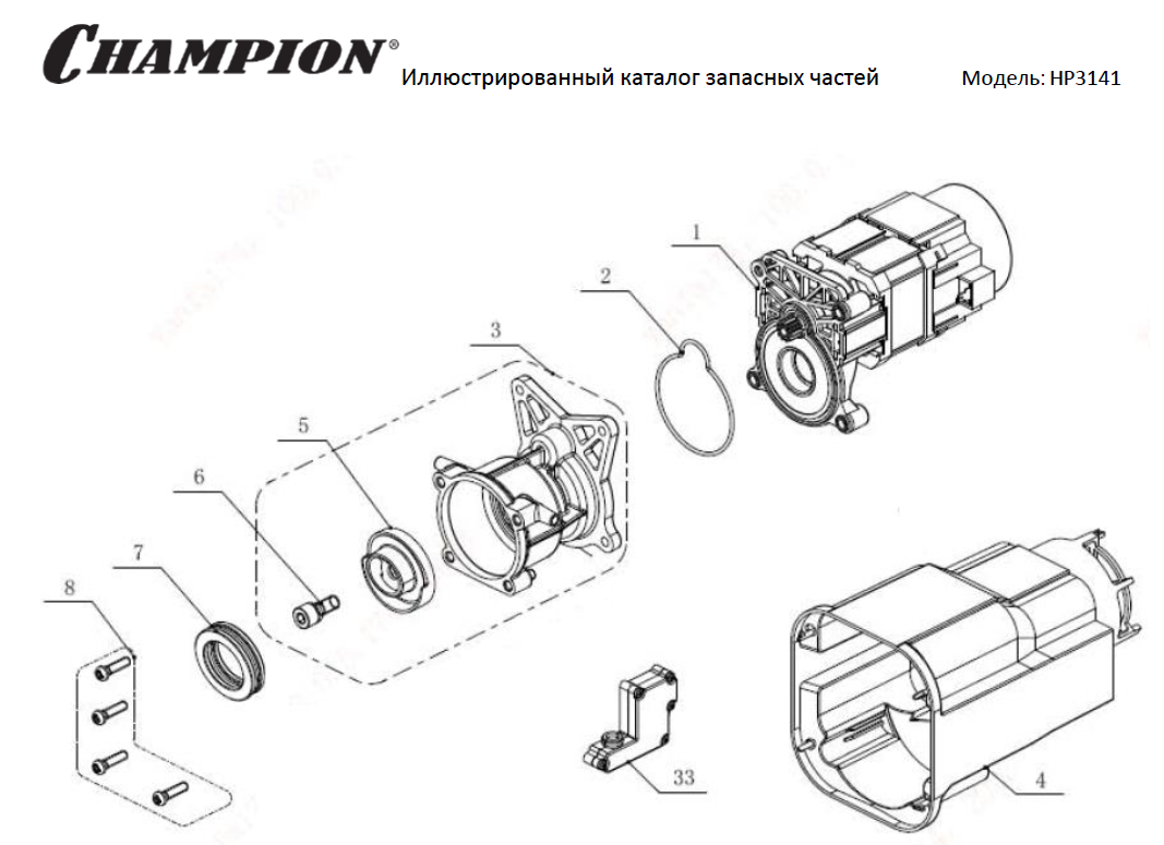 1 | Электродвигатель, Шайба косая | HP3141 мойка Чемпион | Запчасти, сервис, ремонт