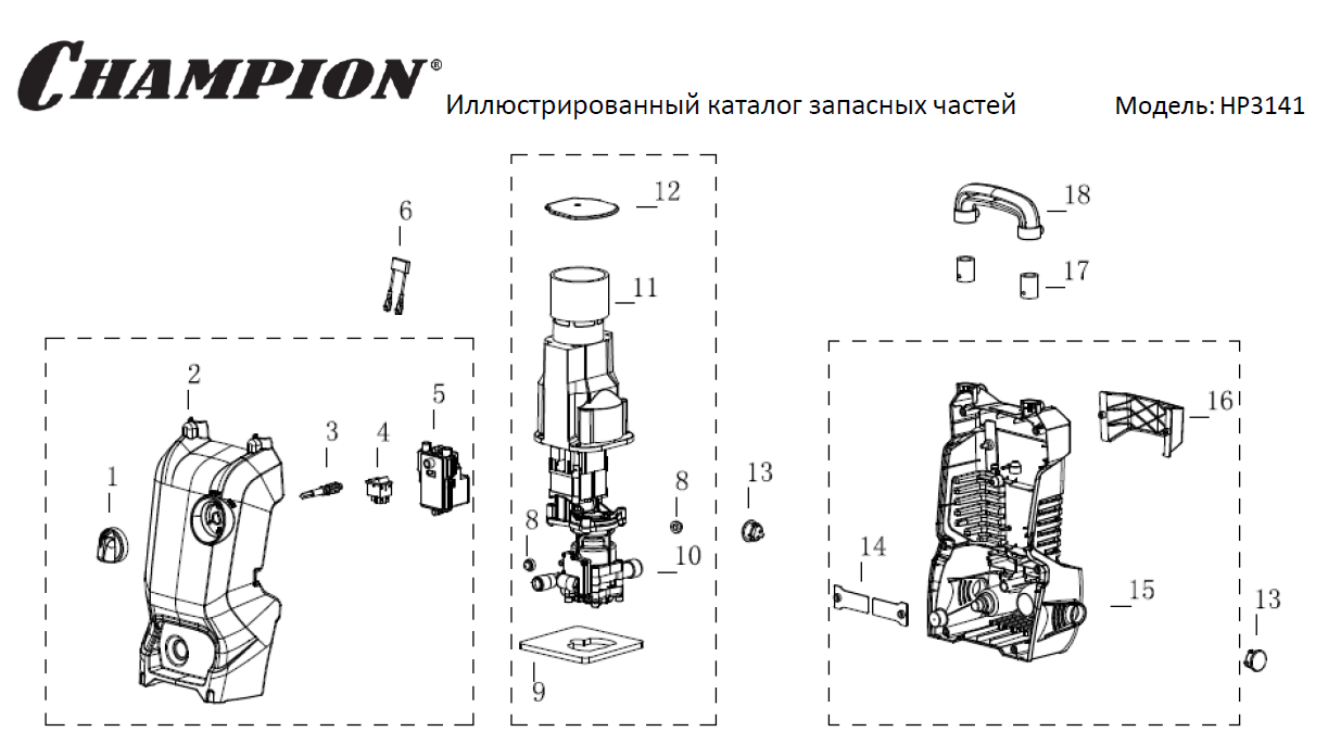 3 | Корпус мойки, Выключатель двигателя | HP3141 мойка Чемпион | Запчасти, сервис, ремонт