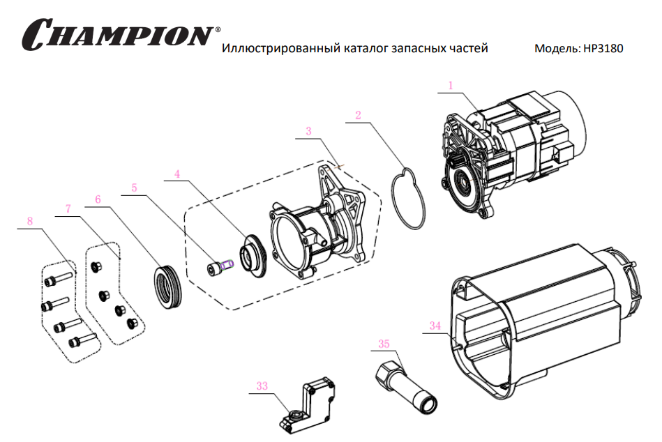 2 | Корпус насоса, Поршень насоса | HP3180 мойка Чемпион | Запчасти, сервис, ремонт