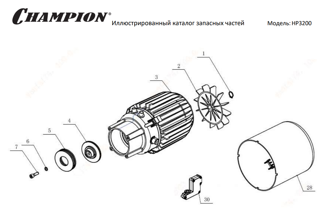 4 | Электродвигатель в сборе с насосом | HP3200 мойка Чемпион | Запчасти, сервис, ремонт