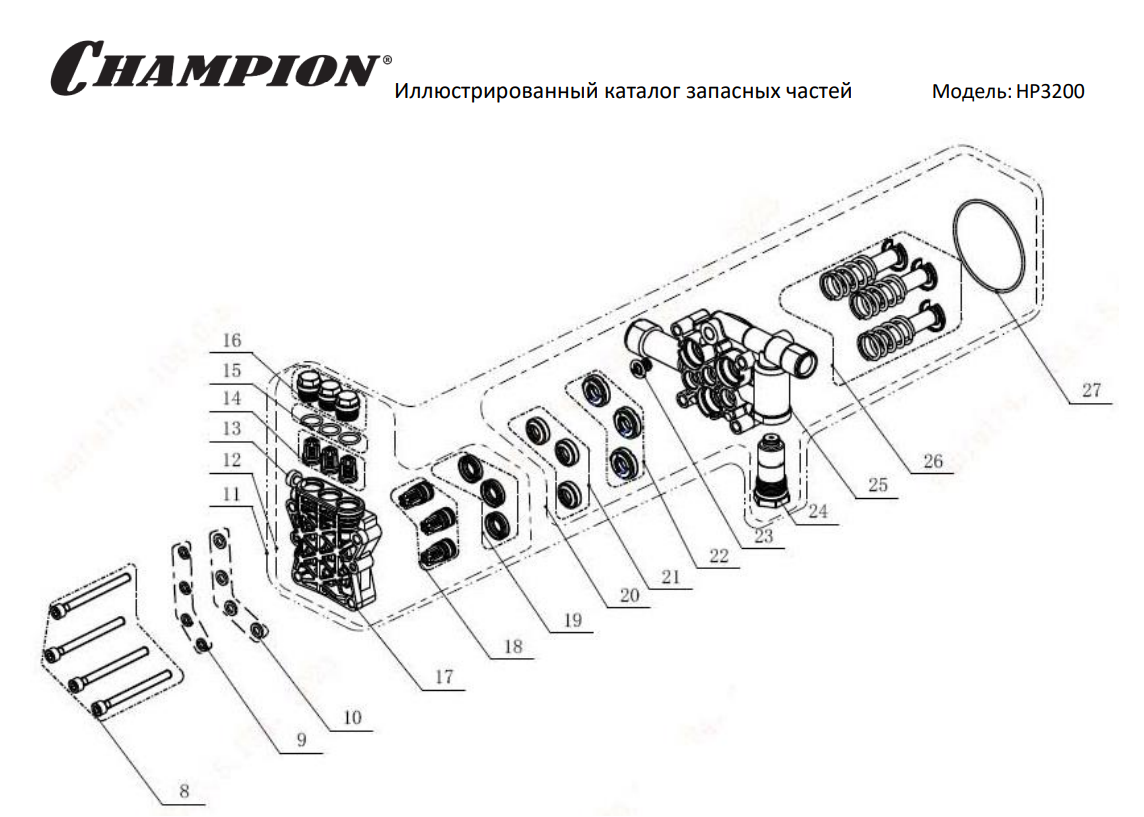 2 | Корпус насоса, Поршень насоса | HP3200 мойка Чемпион | Запчасти, сервис, ремонт