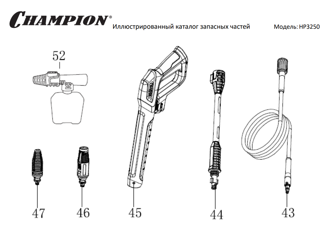 6 | Пистолет, Шланг | HP3250 мойка Чемпион | Запчасти, сервис, ремонт