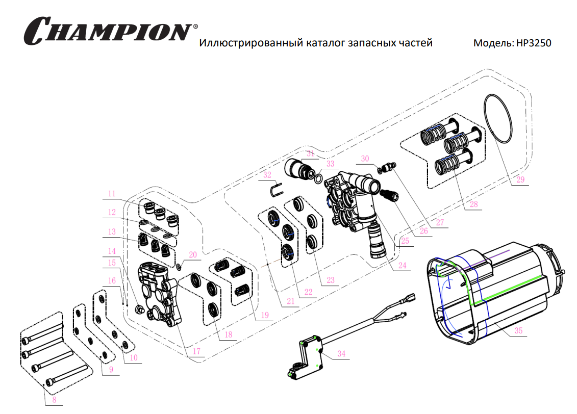 5 | Электродвигатель в сборе с насосом | HP3250 мойка Чемпион | Запчасти, сервис, ремонт