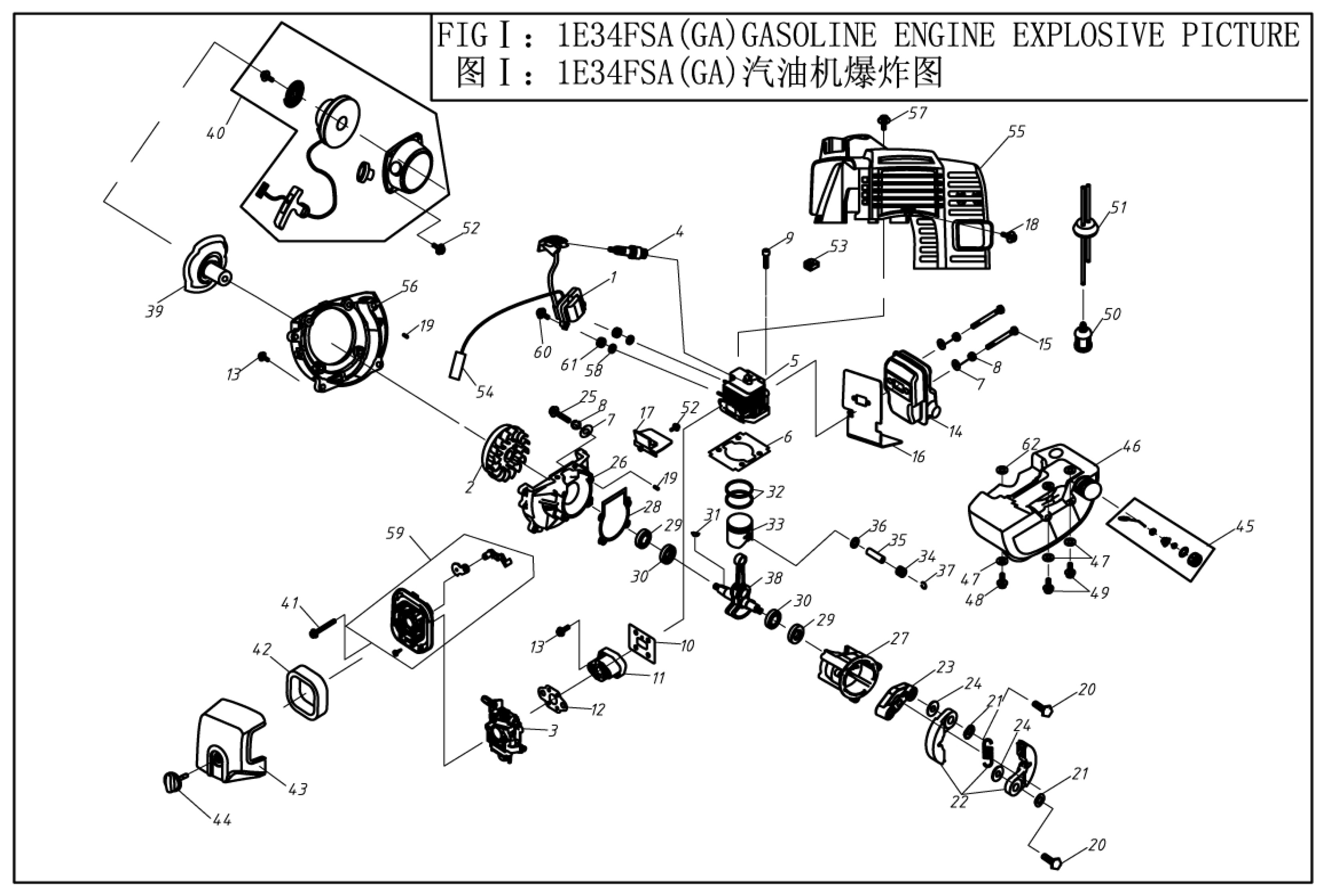 1 ПОРШЕНЬ - ЦИЛИНДР - КОЛЕНВАЛ - КОЛЬЦА - МАГНЕТО - МАХОВИК - СТАРТЕР | Запчасти для ножниц садовых чемпион HT625R | Поставка по России | Магазин-Сервис в СПБ |