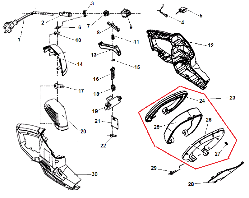 1 ВЫКЛЮЧАТЕЛЬ - КОРПУС | Запчасти для ножниц садовых чемпион HTE550 | Поставка по России | Магазин-Сервис в СПБ |