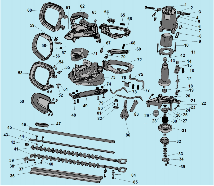 1 ВЫКЛЮЧАТЕЛЬ - ЯКОРЬ - СТАТОР - ЩЕТКИ - | Запчасти для ножниц садовых чемпион HTE610R | Поставка по России | Магазин-Сервис в СПБ |
