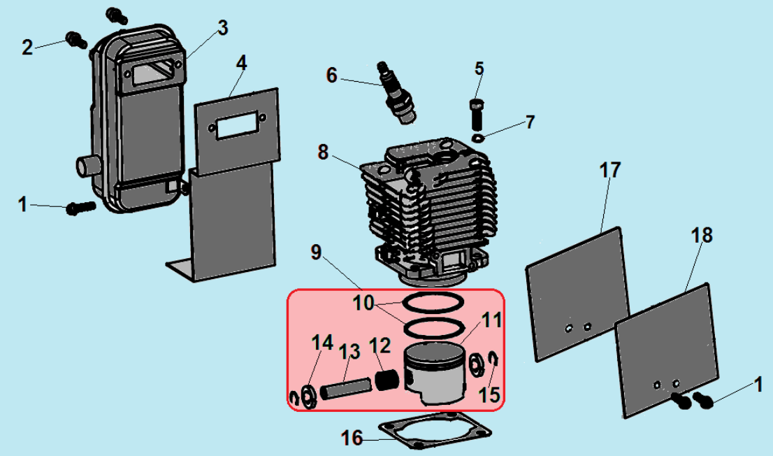1 ПОРШЕНЬ - ЦИЛИНДР - СТАРТЕР - СЦЕПЛЕНИЕ | Запчасти для опрыскивателя чемпион PS282 | Поставка по России | Магазин-Сервис в СПБ |