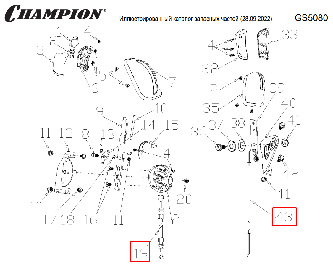 1 | ТРОСА - РУЧКА | Запчасти для уборочной чемпион | GS5080 после 2021 года | после s/n 37012000001 | Поставка по России | Магазин-Сервис в СПБ |