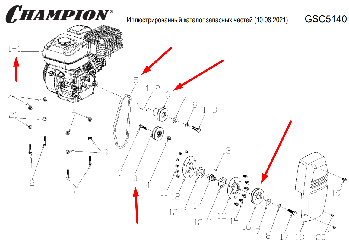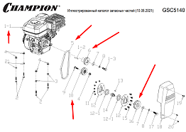 3 | Ремень приводной, Шкив ведомый | GSC5140 скарификатор Чемпион| Запчасти, сервис, ремонт