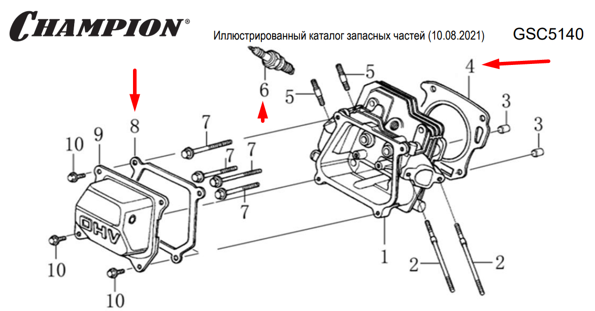 8 | Головка цилиндра | GSC5140 скарификатор Чемпион| Запчасти, сервис, ремонт