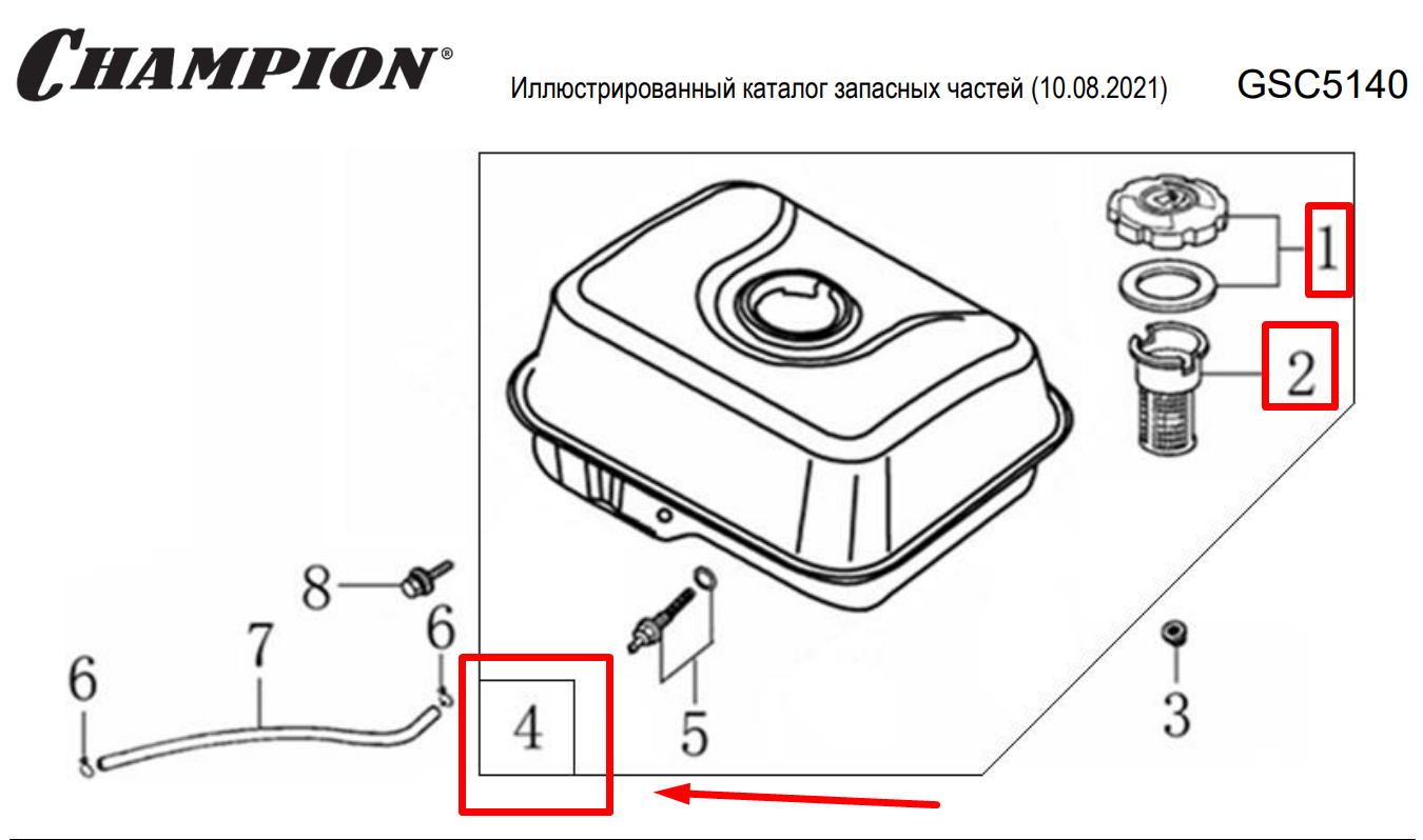 20 | Бак топливный | GSC5140 скарификатор Чемпион| Запчасти, сервис, ремонт