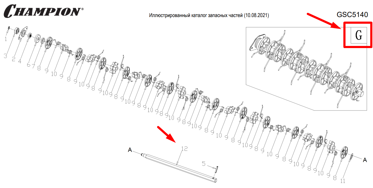 12 | Распредвал | GSC5140 скарификатор Чемпион| Запчасти, сервис, ремонт