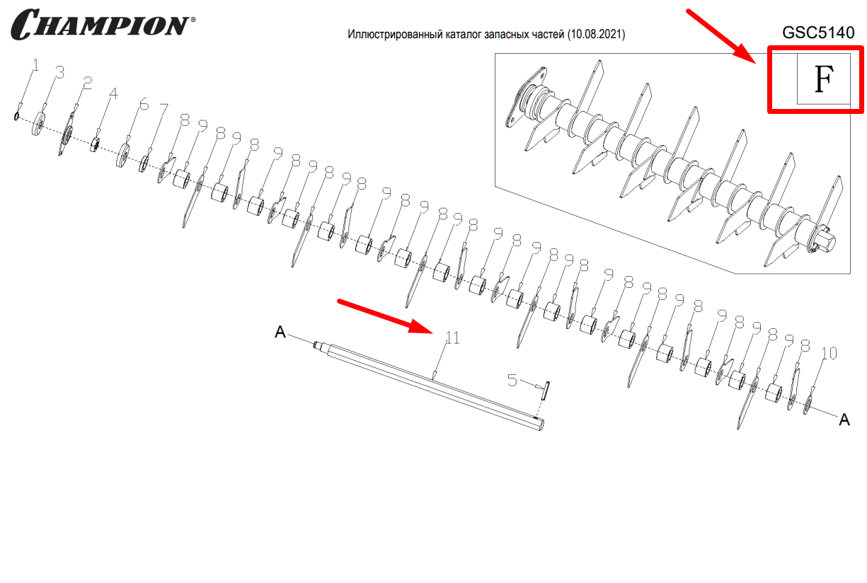 9 | Картер | GSC5140 скарификатор Чемпион| Запчасти, сервис, ремонт
