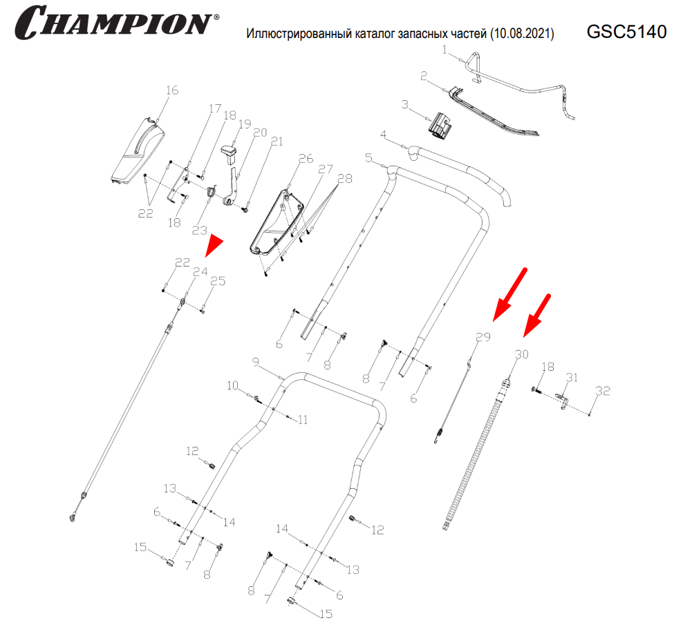 1 | Трос выбора высоты, Трос выключения двигателя | GSC5140 скарификатор Чемпион| Запчасти, сервис, ремонт