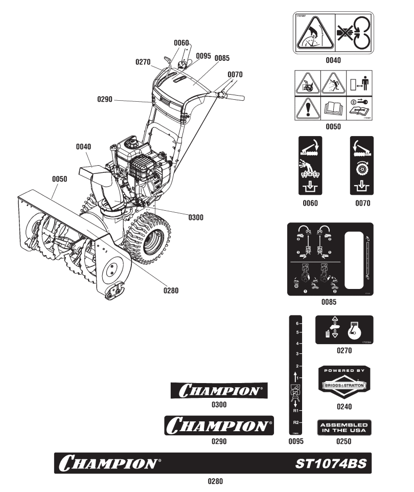 9 НАКЛЕЙКИ | Запчасти для снегоуборщика чемпион ST1074BS | Поставка по России | Магазин-Сервис в СПБ |