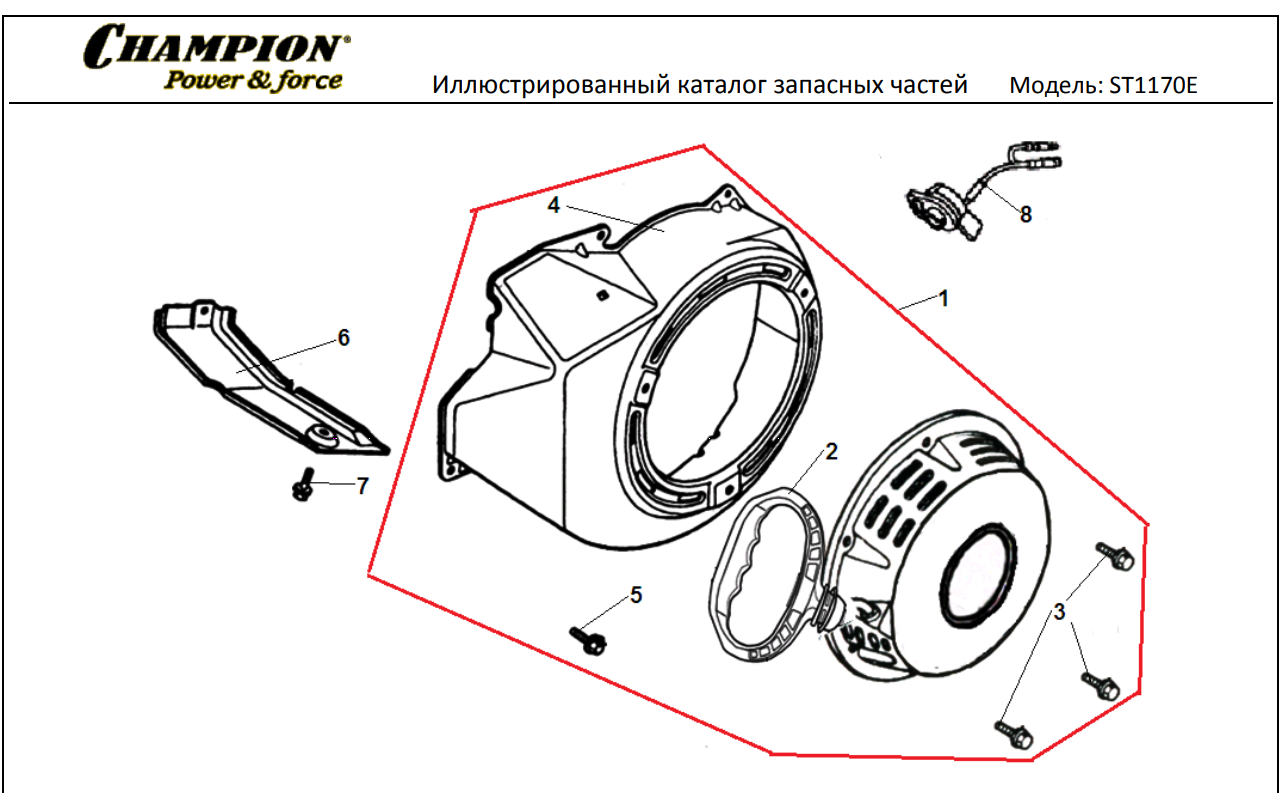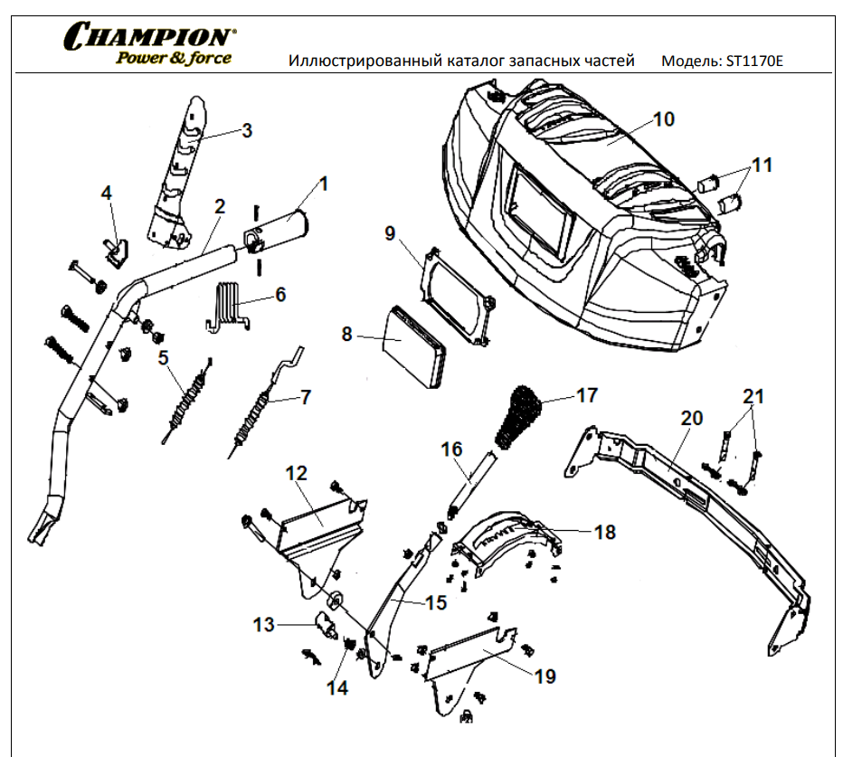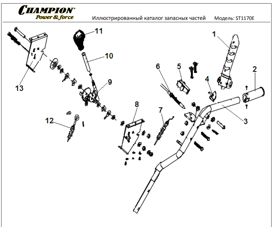 1 ДЕТАЛИ УПРАВЛЕНИЯ | Запчасти для снегоуборщика чемпион ST1170E | Поставка по России | Магазин-Сервис в СПБ |