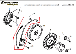 18 МАГНЕТО - МАХОВИК | Запчасти для снегоуборщика чемпион ST1170E | Поставка по России | Магазин-Сервис в СПБ |