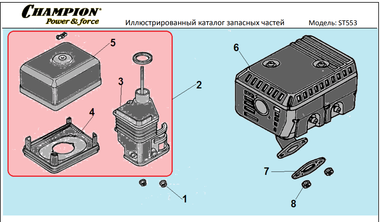 5 ЦИЛИНДР | Запчасти для снегоуборщика чемпион ST553 | Поставка по России | Магазин-Сервис в СПБ |