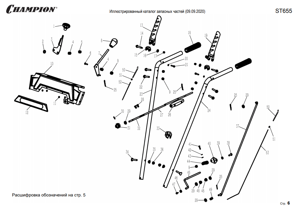 4 ДЕТАЛИ УПРАВЛЕНИЯ | Запчасти для снегоуборщика чемпион ST655 | Поставка по России | Магазин-Сервис в СПБ |