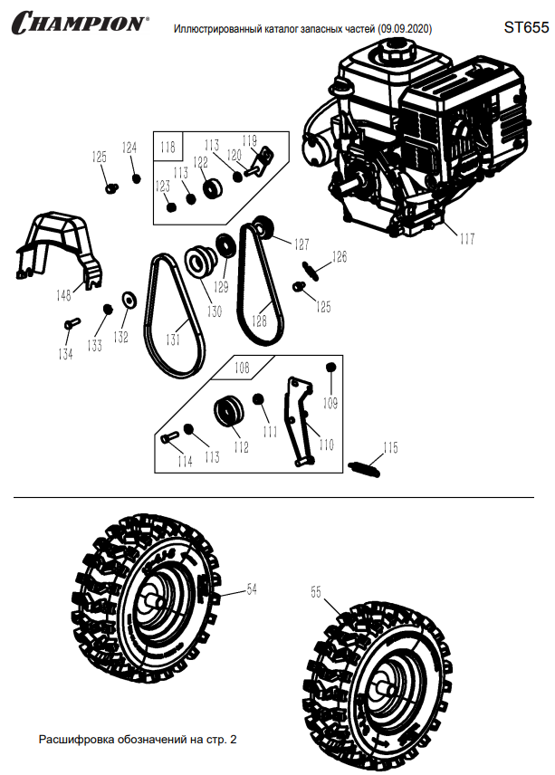 2 РЕМЕНЬ - ШКИВ - КОЛЕСА | Запчасти для снегоуборщика чемпион ST655 | Поставка по России | Магазин-Сервис в СПБ |
