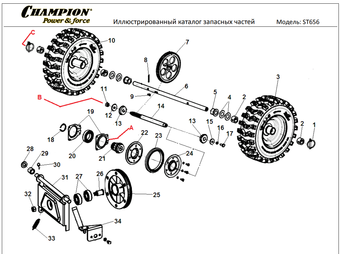 2 РЕМЕНЬ - ШКИВ - ШЕСТЕРНИ | Запчасти для снегоуборщика чемпион ST656 | Поставка по России | Магазин-Сервис в СПБ |
