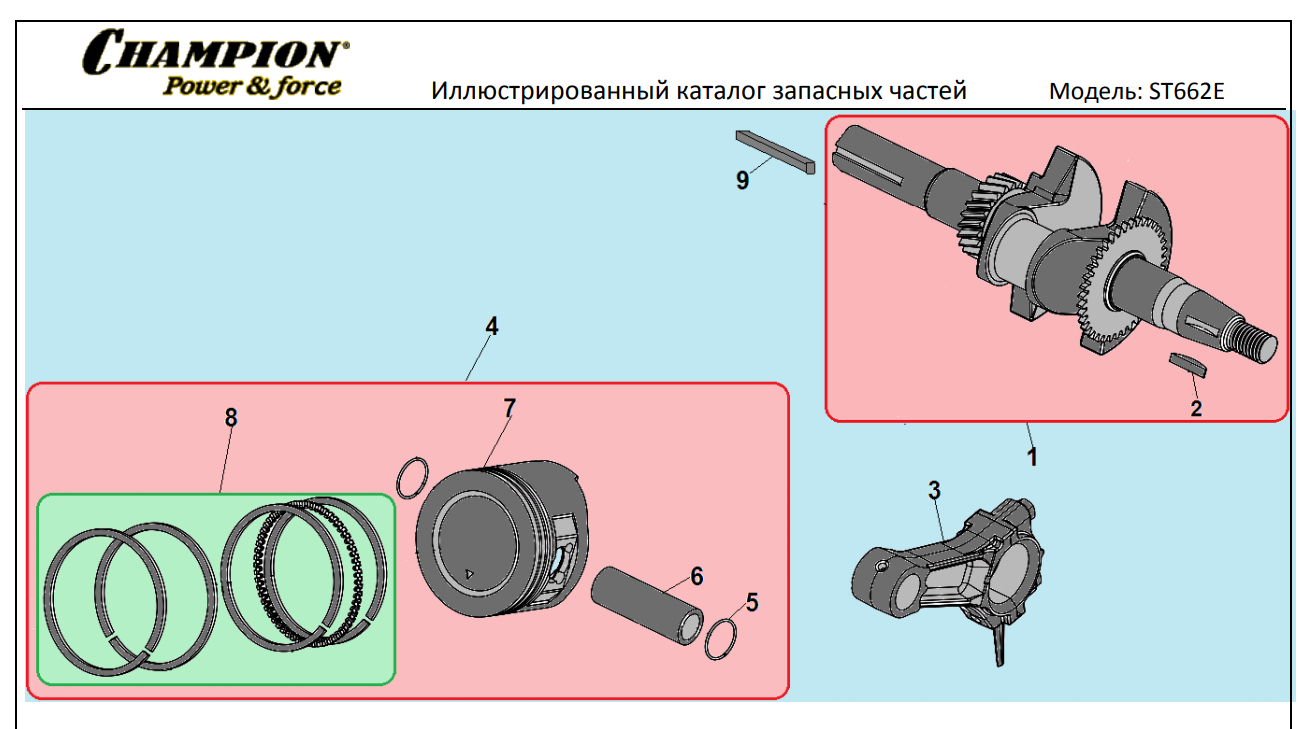 9 ПОРШЕНЬ -ЦИЛИНДР -КОЛЕНВАЛ- КОЛЬЦА | Запчасти для снегоуборщика чемпион ST662E | Поставка по России | Магазин-Сервис в СПБ |