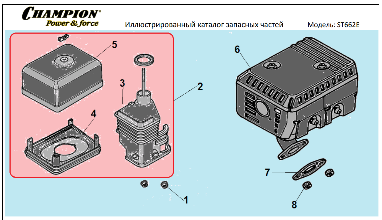 7 ЦИЛИНДР | Запчасти для снегоуборщика чемпион ST662E | Поставка по России | Магазин-Сервис в СПБ |