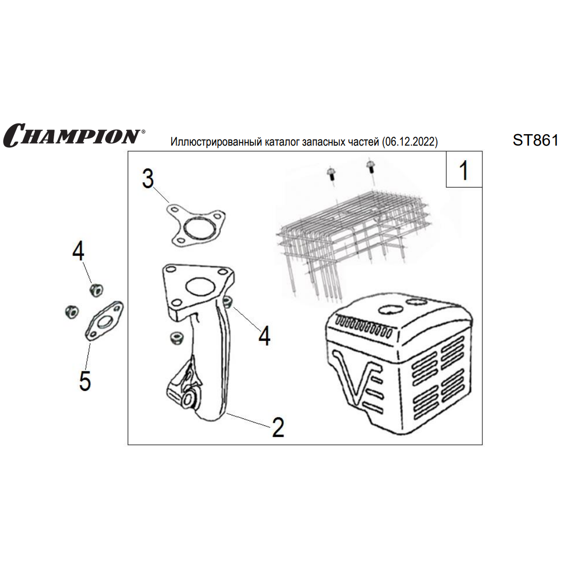 21 | ГЛУШИТЕЛЬ | Запчасти для снегоуборщика чемпион ST861 | Поставка по России | Магазин-Сервис в СПБ |