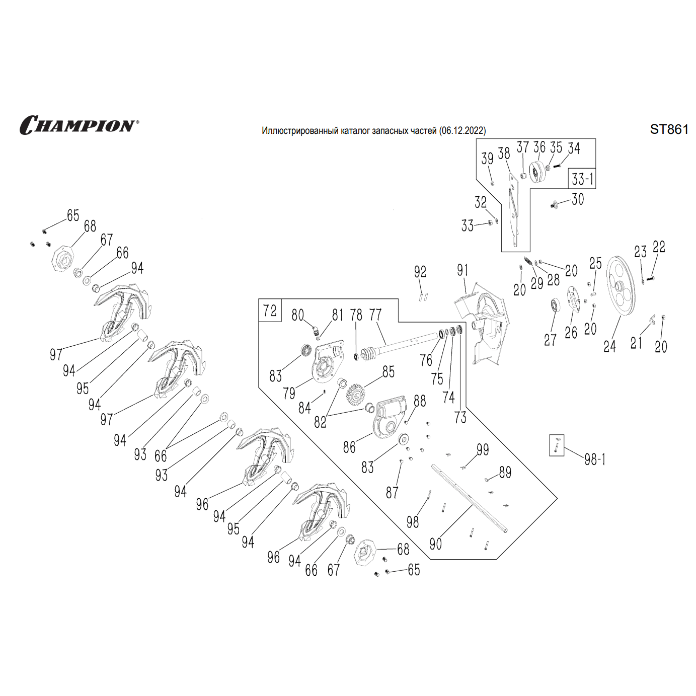 22 | БАК | Запчасти для снегоуборщика чемпион ST861 | Поставка по России | Магазин-Сервис в СПБ |