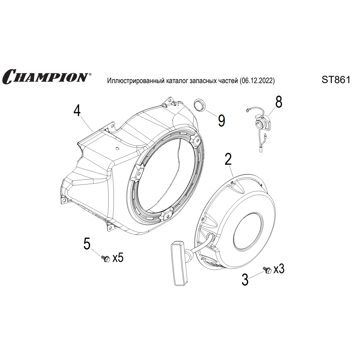 15 | СТАРТЕР | Запчасти для снегоуборщика чемпион ST861 | Поставка по России | Магазин-Сервис в СПБ |