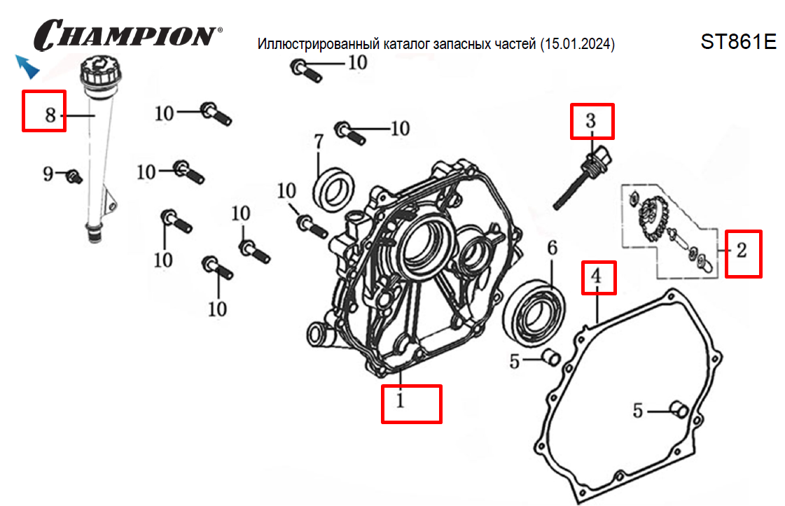11 | Крышка картера | ST861E снегоуборщик Чемпион | Поставка по России | Магазин-Сервис в СПБ |