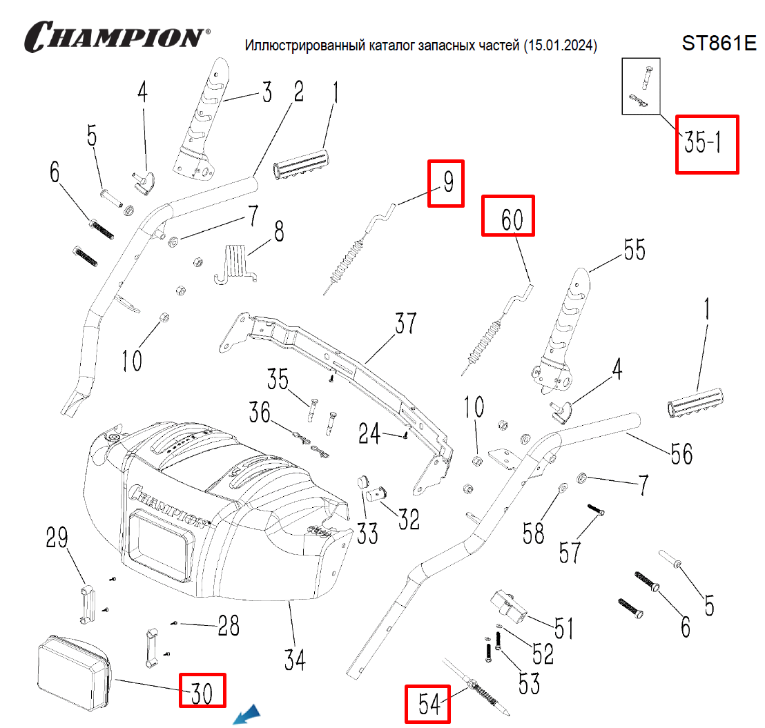 6 | Трос, Фара, Ручка | ST861E снегоуборщик Чемпион | Поставка по России | Магазин-Сервис в СПБ |