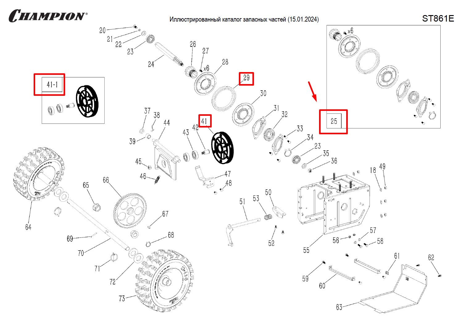3 | Колесо фрикциона в сборе, Шестерня | ST861E снегоуборщик Чемпион | Поставка по России | Магазин-Сервис в СПБ |