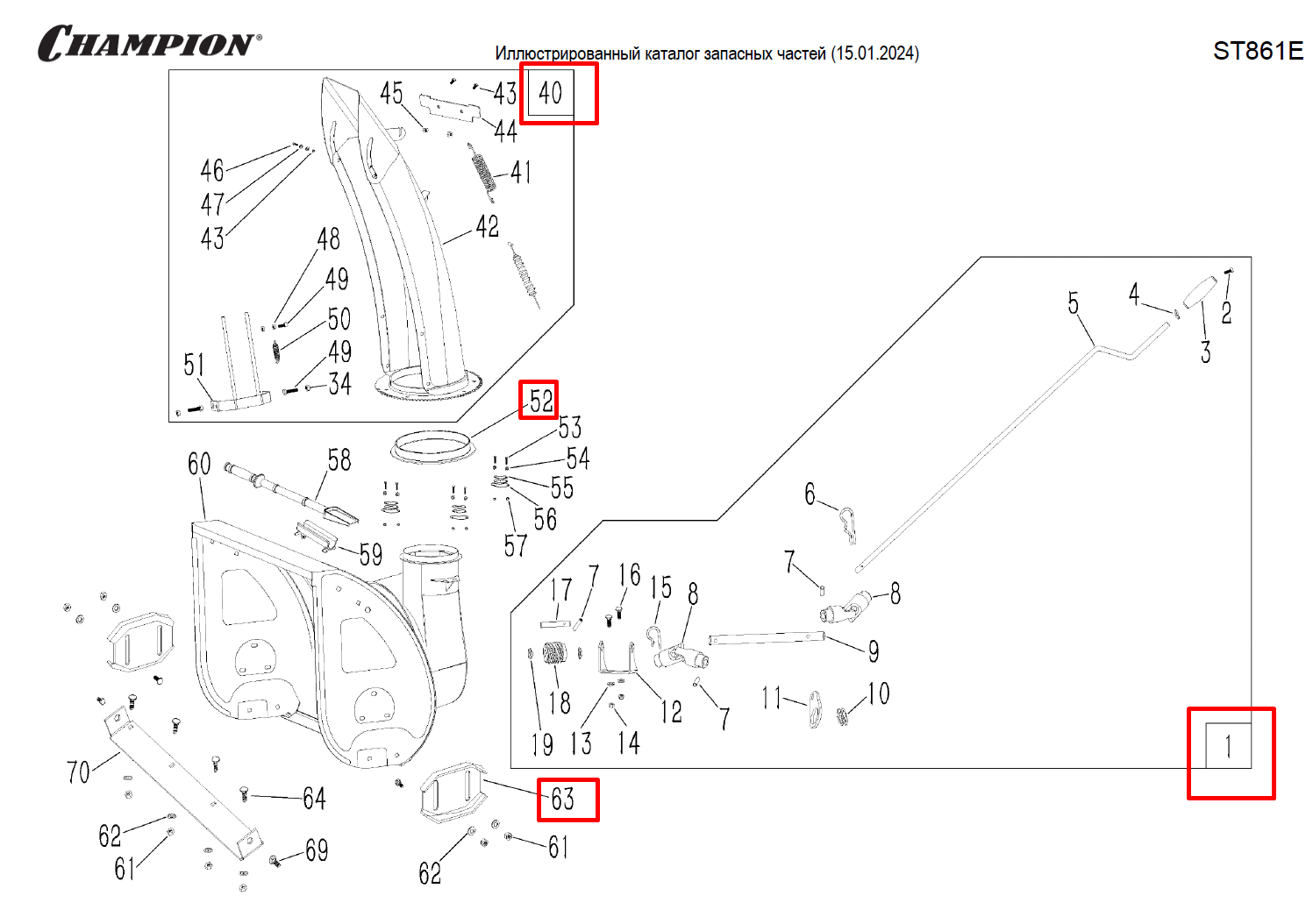 2 | Желоб выброса, Кожух шнеков | ST861E снегоуборщик Чемпион | Поставка по России | Магазин-Сервис в СПБ |