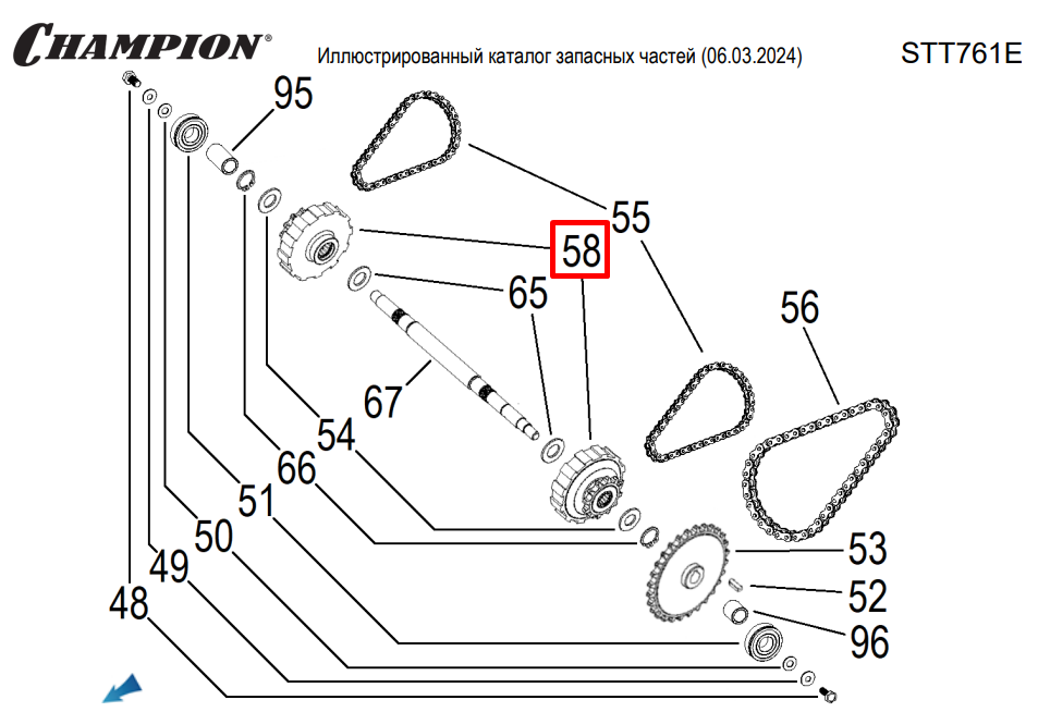 10 | Вал блокировочных упоров | STT761E снегоуборщик Чемпион | Поставка по России | Магазин-Сервис в СПБ |
