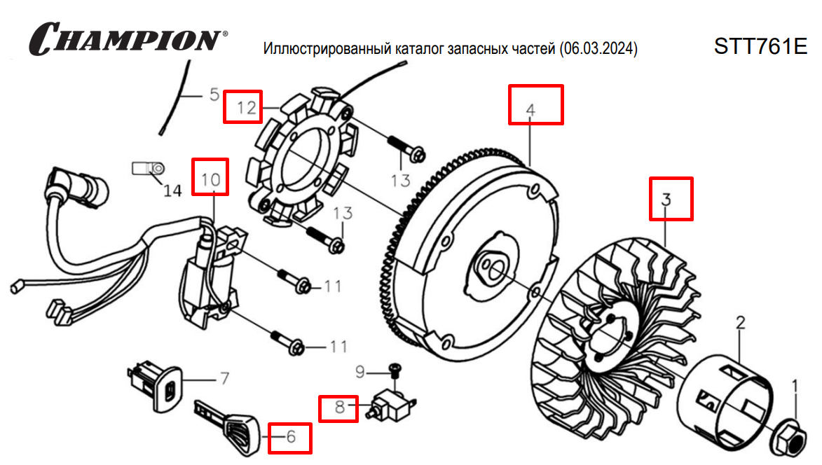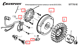 24 | Маховик, Магнето | STT761E снегоуборщик Чемпион | Поставка по России | Магазин-Сервис в СПБ |