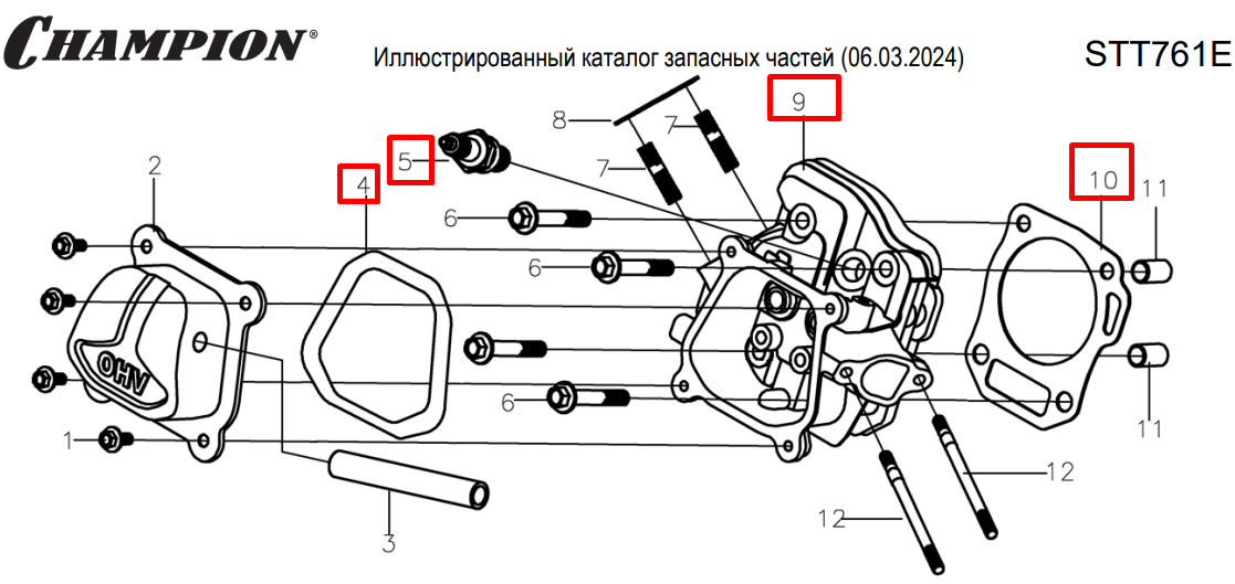 16 | Головка цилиндра | STT761E снегоуборщик Чемпион | Поставка по России | Магазин-Сервис в СПБ |