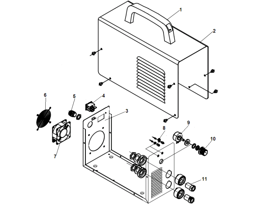 1 КОРПУС - ВЕНТИЛЯТОР - РЕГУЛЯТОР | Запчасти для сварочника чемпион IW-160 MINI | Поставка по России | Магазин-Сервис в СПБ |