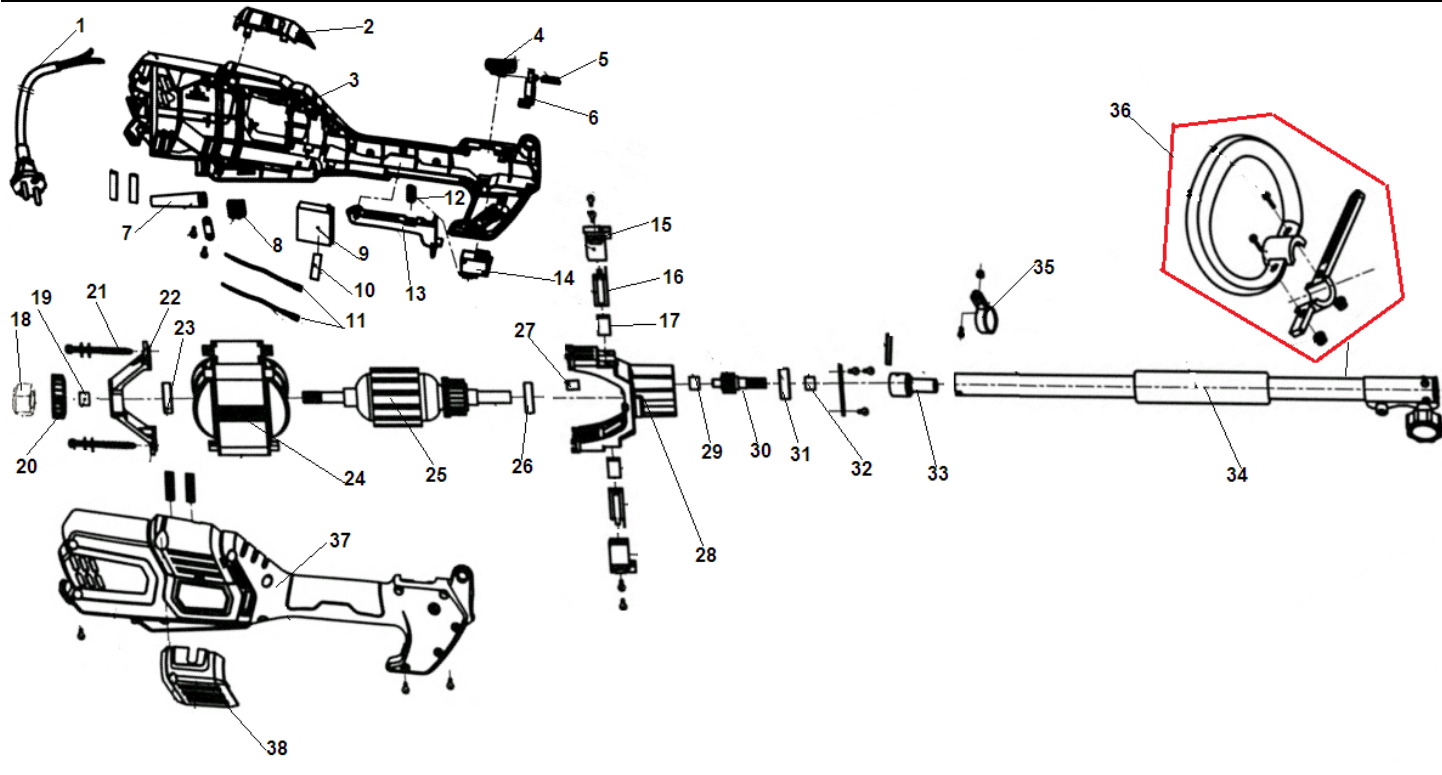 1 Электродвигатель - Щетки - Якорь - Статор - Выключатель | Запчасти для триммера чемпион ЕТ1004А | Поставка по России | Магазин-Сервис в СПБ |