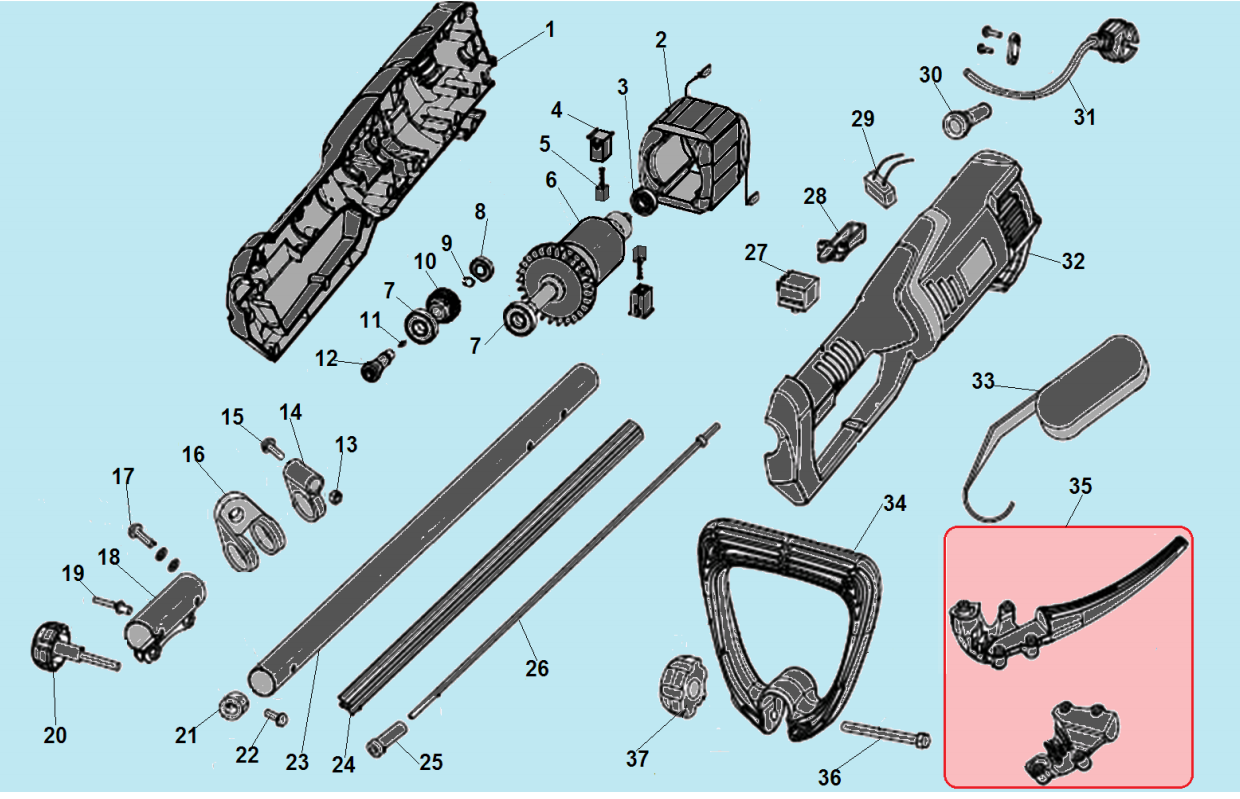1 Электродвигатель - Щетки - Якорь - Статор - Выключатель | Запчасти для триммера чемпион ЕТ1204А | Поставка по России | Магазин-Сервис в СПБ |