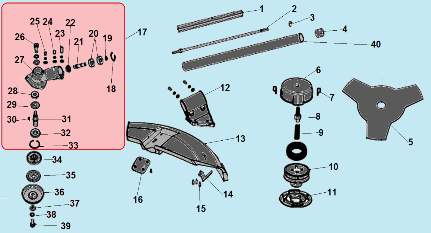 2 Штанга - Головка - Кожух - Головка - Редуктор | Запчасти для триммера чемпион ЕТ1204А | Поставка по России | Магазин-Сервис в СПБ |