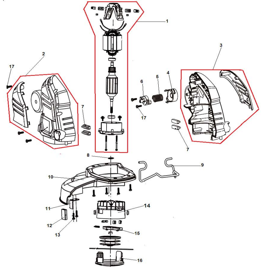 2 Электродвигатель - Щетки - Головка - Кожух - Якорь - Статор | Запчасти для триммера чемпион ЕТ451 | Поставка по России | Магазин-Сервис в СПБ |